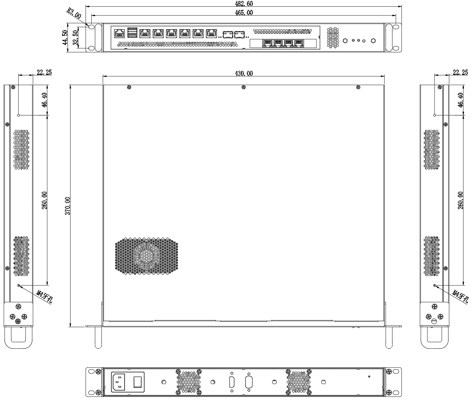 483(寬)x370()x44.5(高) mm (含掛耳)