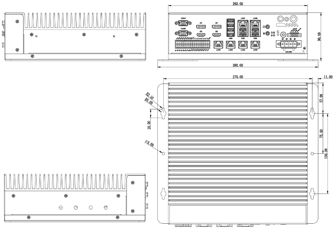 鋁型材主體,鐵灰色;無風(fēng)扇設(shè)計,無排線設(shè)計  |